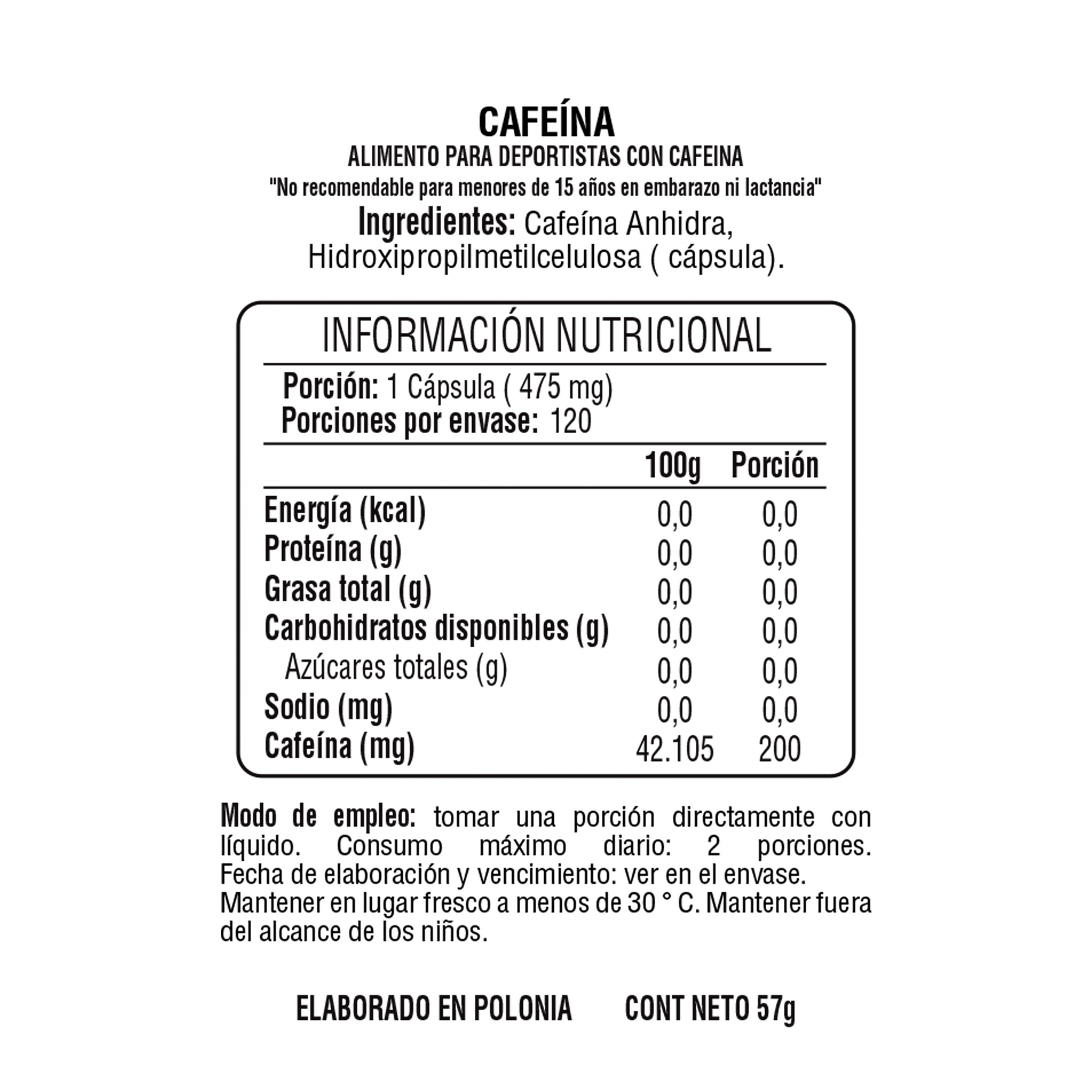 CAFEÍNA SPEED es el suplemento ideal para quienes buscan un impulso extra de energía y concentración. Cada cápsula contiene 200 mg de cafeína anhidra, perfecta para mejorar el rendimiento en entrenamientos o actividades que exigen máximo enfoque.